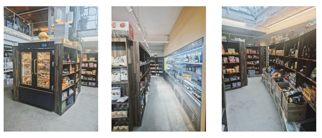 1층은 식료품 마켓으로 운영되어, 수입 식재료·조미료·와인·스낵 등